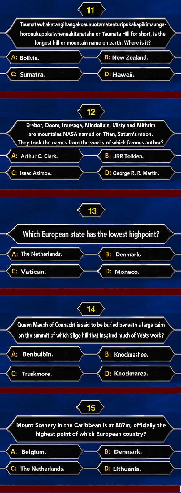 Hillionaire Quiz