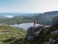F (H031 818)) and the track bends south to reach the slopes of Croaghmeen - a low hill with a distinctive bump, actual top another bump further back. Nearly dark so had to wait til morning for views as set up camp beside nice little lough just below top. Some 6.5 miles and three hours of walking to reach here.